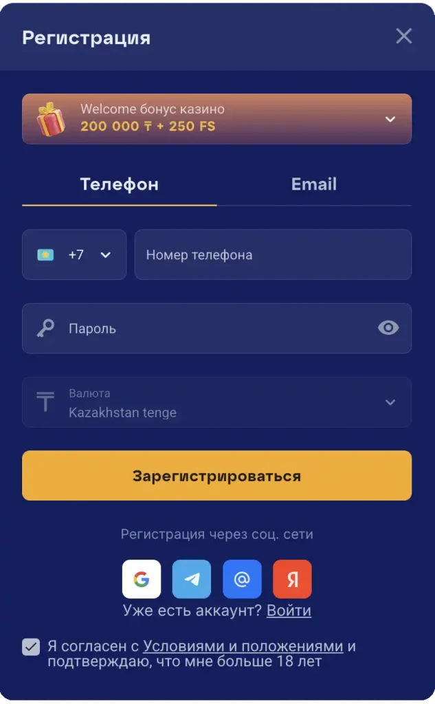 Да, казино принимает валюту, используемую в Казахстане. Ограничения по этому поводу не предусмотрены.